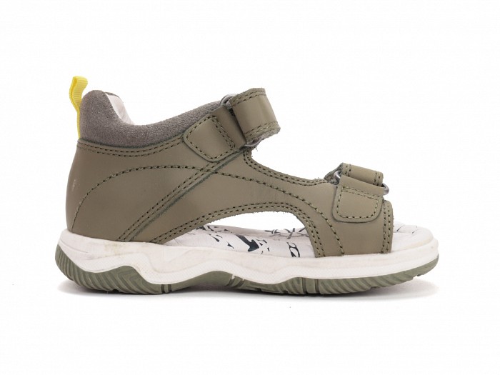 Kekizöld színű bőrből készült, két tépőzáras fazonú, szép, letisztult, fiú szandál.